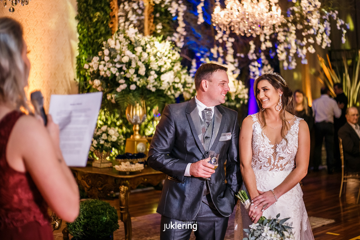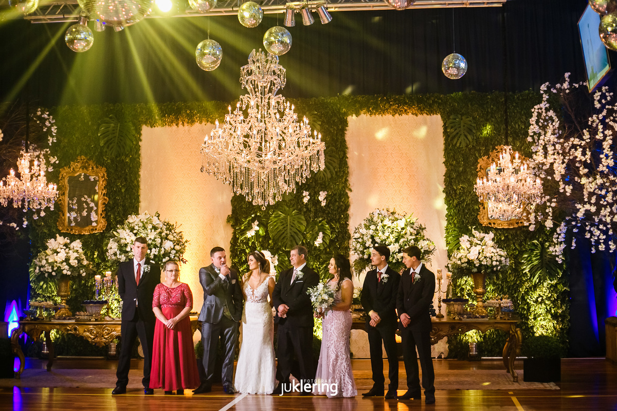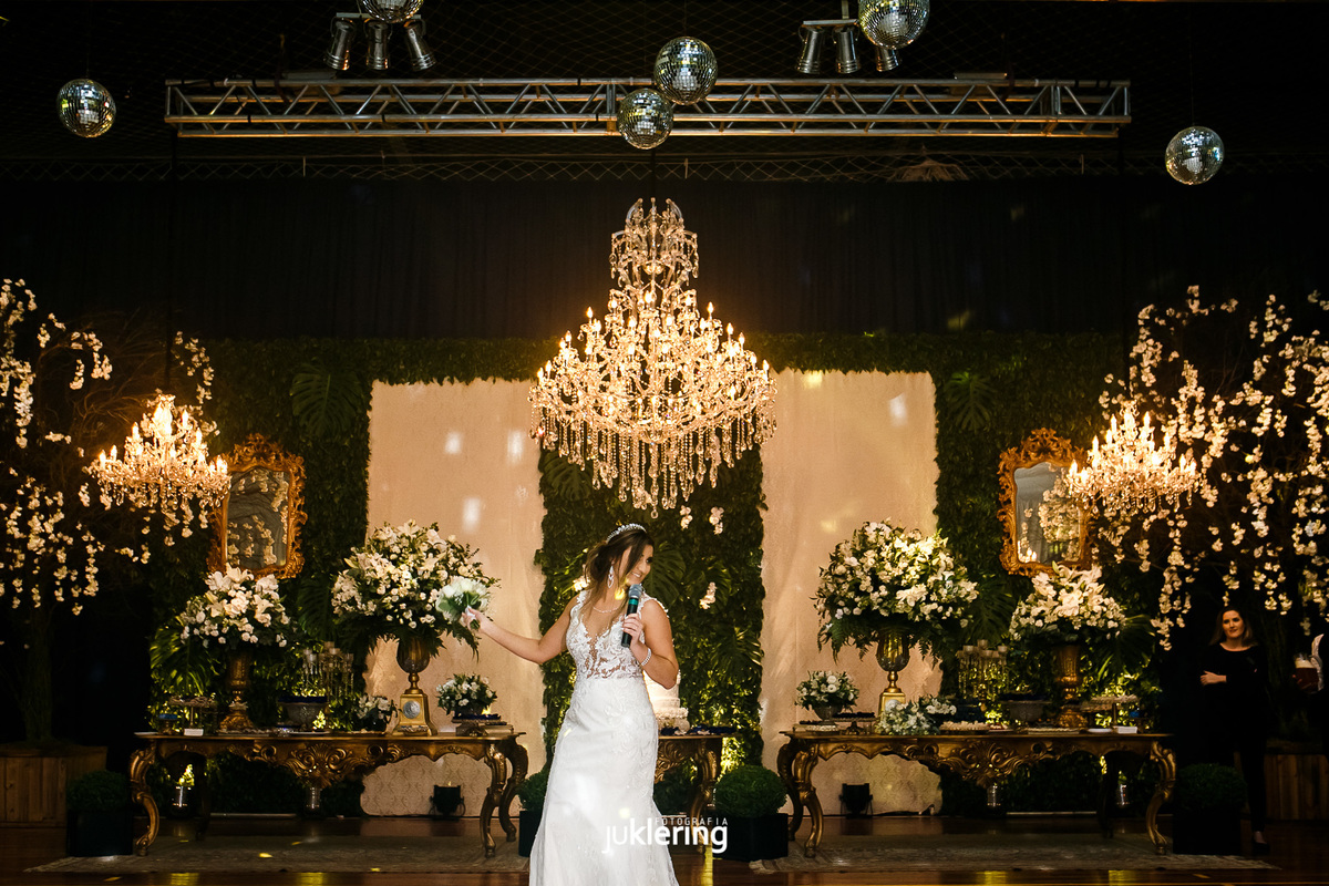 E falando em decoração! Impossível não reparar na produção incrível dessa noite! Bruna, nossa noiva linda, é uma das profissionais da área em nossa região, e não poupou esforços e ideias para transformar, literalmente, um ginásio de comunidade, em um elegantíssimo salão de festas, pano de fundo para celebrar uma noite de conquistas, de amor, dos sentimentos mais nobres!